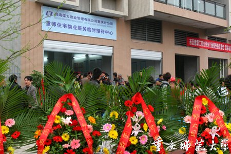 重慶市教委黎德龍副主任、沙坪壩區(qū)委楊邦維常委、沙坪壩區(qū)開(kāi)發(fā)辦陳永國(guó)主任、沙坪壩區(qū)建委葉顯育副主任、沙坪壩區(qū)大學(xué)城管委會(huì)繆旭平副主任,以及重慶師范大學(xué)全體校領(lǐng)導(dǎo)、珠海葆力物業(yè)管理有限公司重慶分公司張峰總經(jīng)理和市教委相關(guān)處室的領(lǐng)導(dǎo)出席儀式。