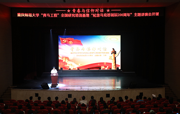 為學習貫徹黨的十九大精神和學習領會習近平總書記系列重要講話,6月13日,我校“青春與信仰對話“——“青馬工程”全國研究培訓基地紀念“馬克思誕辰200周年”講演主題活動于校友會堂隆重舉行。重慶市團市委學校部部長張斐,我校黨委副書記、校長周澤揚教授,校黨委副書記龔燕教授,校紀委書記肖應紅教授出席此次活動,各職能部門負責人、各學院黨政主要負責人、師生代表等數百人共同觀看本次講演。