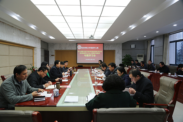 12月15日,我校黨委中心組在309會議室召開專題學(xué)習(xí)會,集中學(xué)習(xí)習(xí)近平總書記在紀(jì)念紅軍長征勝利80周年大會上的講話精神、在全國高校思想政治工作會議上的講話精神,以及十八屆六中全會精神。黨委中心組全體成員參加,校黨委書記曾禮同志主持會議。