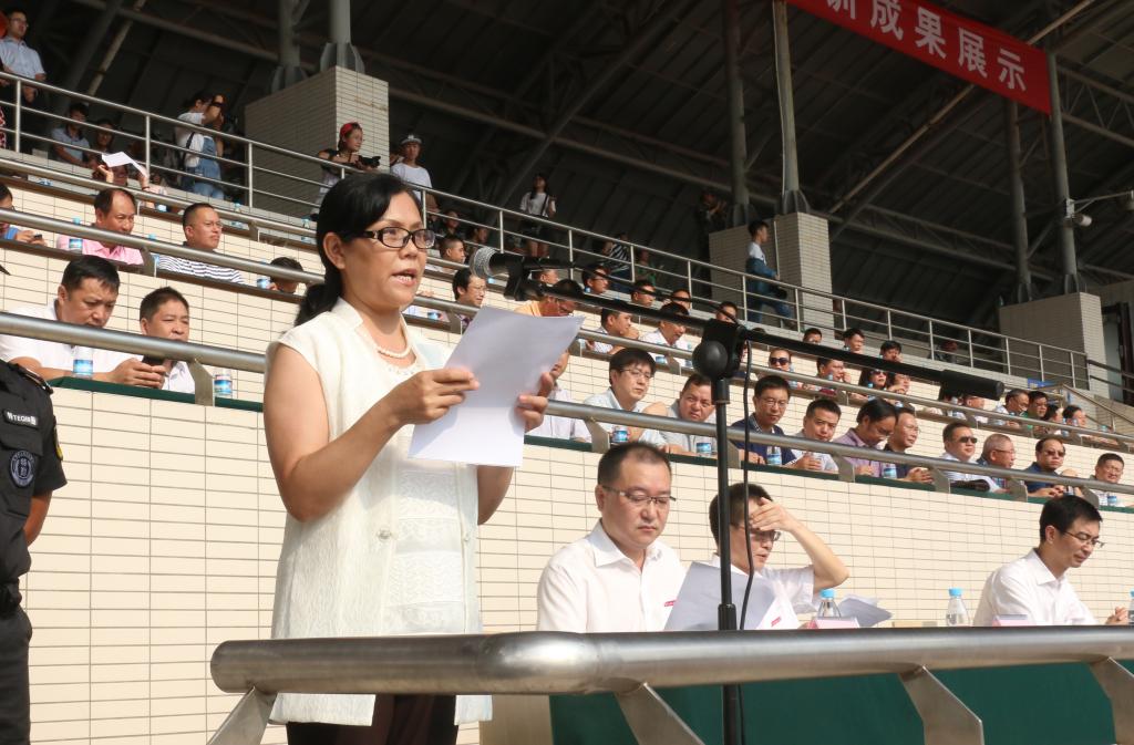 軍訓成果展示結束后,校黨委副書記、2016級新生軍訓師副政委龔燕同志宣讀了軍訓先進連隊和優勝方隊名單。