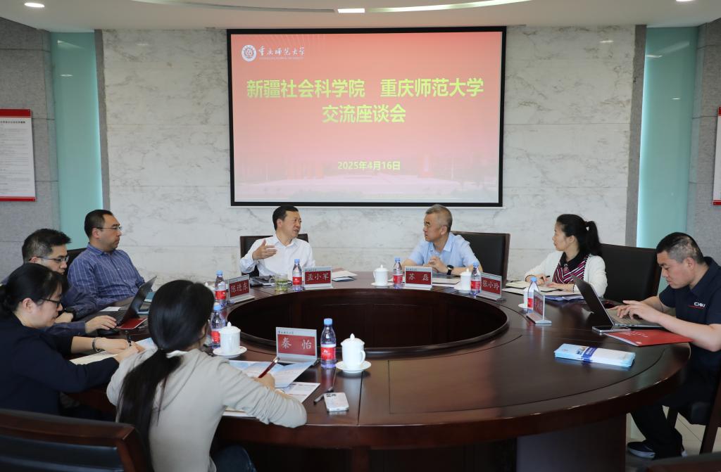 4月16日下午,新疆維吾爾自治區社會科學院黨委委員、副院長蘇磊一行來校交流座談。學校黨委常委、副校長孟小軍主持會議。