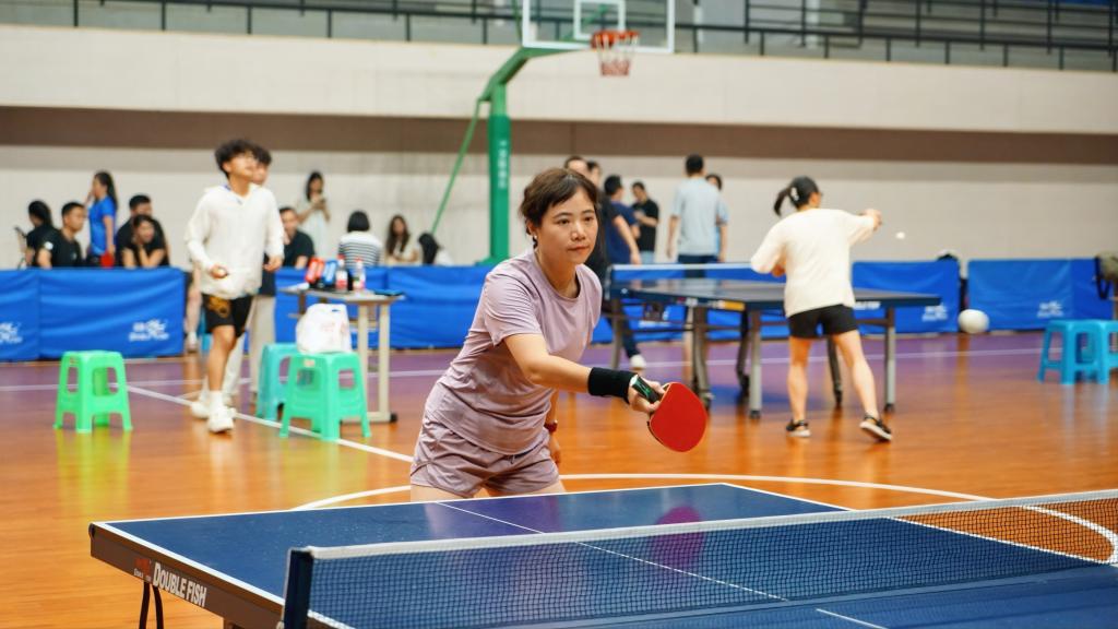 2025年教職工乒乓球團體賽設男單、女單、混雙三個項目,采取三局兩勝制,按照組內循環賽和交叉淘汰賽的方式決出勝負。比賽得到了各學院、機關職能部門的大力響應,賽場上,運動員們全情投入、奮勇拼搏,直拍、橫拍揮灑自如,扣球、旋轉球、弧線球等精湛球技輪番上演。每一次精準的回球、每一個默契的配合,不僅展現了教職工們扎實的乒乓球功底,更彰顯了團結協作的團隊精神。熱烈的比賽氛圍感染了現場師生,加油聲、喝彩聲此起彼伏,充分展現了我校教職工積極向上的精神風貌和健康文明的生活風尚。