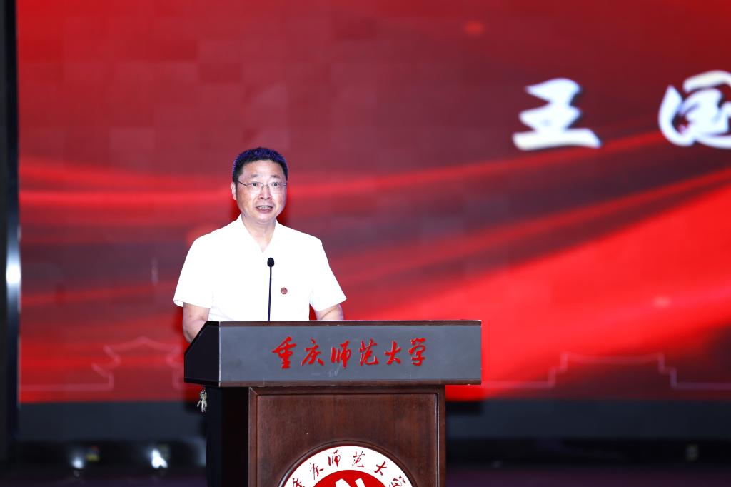 王國胤在講話中指出,教育是國之大計、黨之大計。學校積極響應國家戰略和新時代教師教育改革發展要求,確立了建成教師教育特色鮮明、具有國際影響的全國一流綜合性師范大學的發展目標,加快推進西部地區師范名校建設,大力實施教師教育特色發展行動計劃,在全市高校率先成立數智化教師教育高等研究院,積極探索卓越教師人才培養新模式,全面推進教師教育數字化轉型,努力在主動服務教育強國和教育強市建設中貢獻重師智慧和力量。他向全校師范生提三點希望:一是弘揚教育家精神,做立德樹人的“大先生”。牢記習近平總書記的殷殷囑托,以教育家精神為引領,樹立“心有大我、至誠報國”的崇高理想信念,堅定“學為人師、行為世范”的崇高追求,自覺肩負時代賦予的神圣使命和光榮責任,立鴻鵠志、做奮斗者,以實際行動踐行教育報國誓言,努力成長為新時代黨和人民滿意的優秀教師。二是苦練育人本領,做教育強國建設的“踐行者”。要發揚奮斗精神,摒棄懈怠心態,充分用好數字化教育資源和平臺,筑牢專業根基,錘煉育人本領,快速適應教育數字化時代變革,積極投身教育實踐,以賽促學、以賽促練、以賽促教,以奮斗姿態擦亮青春底色,在教育強國建設的新征程上展現青春作為、體現青春擔當。三是心懷“國之大者”,做大國良師的“接棒人”。要以優秀校友為榜樣,堅守初心使命,永葆教育情懷,與國同向、與時同行,早日成長為讓黨放心、讓人民滿意的大國良師,在祖國廣袤大地上、在祖國最需要的地方建功立業,讓重師精神薪火相傳、生生不息,讓青春在教育強國建設中綻放絢麗光彩。