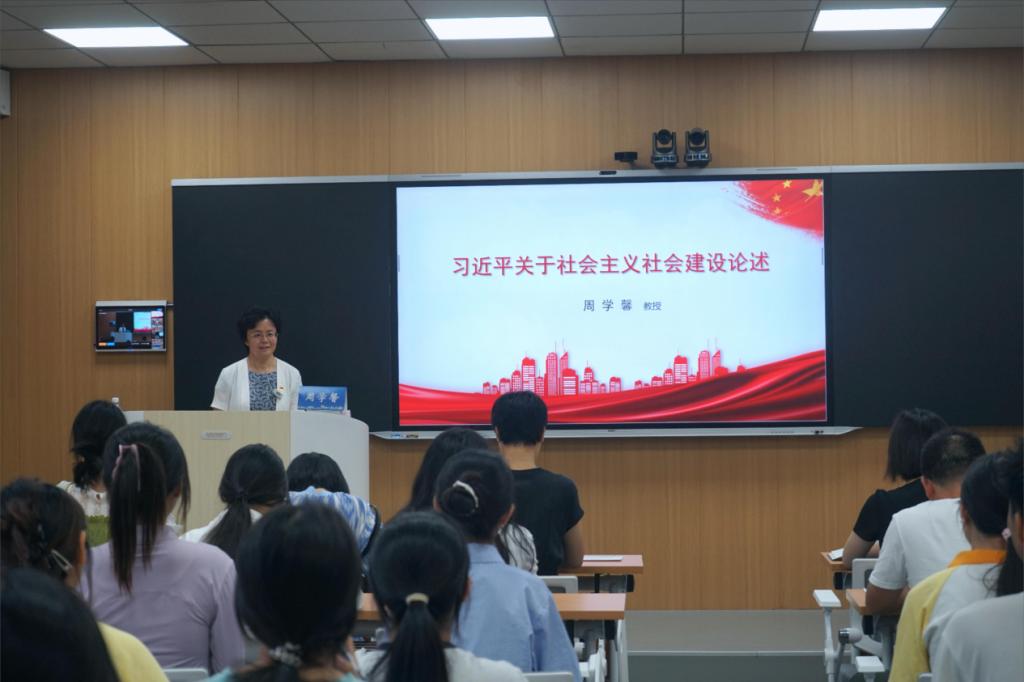 為深入學習貫徹習近平總書記關于社會主義社會建設重要論述,堅持立德樹人根本任務,落實全面從嚴治黨主體責任,6月15日晚,學校黨委副書記周學馨在集賢樓338教室為歷史與社會學院師生講授專題思政課。
