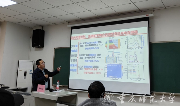11月13日上午,北京交通大學(xué)張福俊教授應(yīng)邀到我校物理與電子工程學(xué)院開展學(xué)術(shù)交流,作題為“倍增型有機(jī)光電探測器的研制及應(yīng)用探索”的學(xué)術(shù)報告。物電學(xué)院師生代表參加。