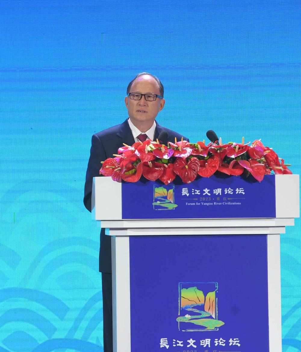 9月12日,重慶悅來(lái)國(guó)際會(huì)議中心,2023長(zhǎng)江文明論壇現(xiàn)場(chǎng),李禹階作主旨演講。記者 鄭宇 攝/視覺(jué)重慶