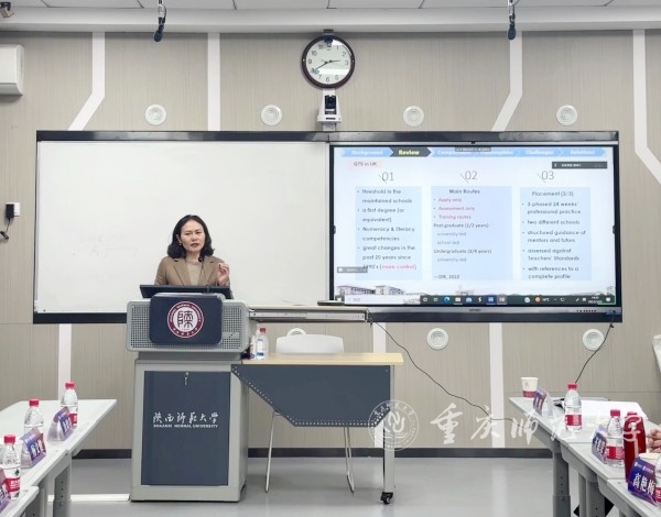 當(dāng)日下午,西部師范大學(xué)“文明交流互鑒視角下外語(yǔ)學(xué)科責(zé)任與使命”圓桌論壇舉行。我院陳君教授以“英語(yǔ)師范生教學(xué)能力培養(yǎng)的中英比較及啟示”為題作會(huì)議發(fā)言。基于對(duì)相關(guān)文本的解讀與英國(guó)訪學(xué)期間的實(shí)地教學(xué)觀察,陳君教授著重分享了英國(guó)英語(yǔ)師范生教學(xué)能力培養(yǎng)的三階段實(shí)踐教學(xué)體系及其對(duì)我國(guó)英語(yǔ)師范生教學(xué)實(shí)踐能力培養(yǎng)的啟示,并與參會(huì)老師就師范生培養(yǎng),特別是師范生培養(yǎng)理論與實(shí)踐教學(xué)體系的有機(jī)融合展開了熱烈討論。