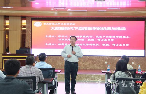 10月11日下午,中國科學(xué)院院士、發(fā)展中國家科學(xué)院院士、北京大學(xué)校長助理張平文教授做客“三春湖講壇”,作題為“大數(shù)據(jù)時代下應(yīng)用數(shù)學(xué)的機遇和挑戰(zhàn)”的講座。講座由我校副校長、博士生導(dǎo)師楊新民教授主持。