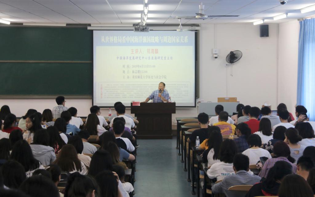 6月13日下午,中國海洋發展研究中心東亞海研究室主任鄭海麟教授受邀,在礪志樓T2208室為我校師生作題為“從世界格局看中國海洋強國戰略與周邊國家關系”的學術講座。講座由我校歷史系主任喻學忠教授主持,院長常云平教授等到場聆聽。