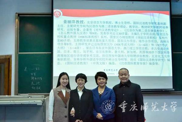 4月1日晚,北京語言大學(xué)教授、博士生導(dǎo)師、國際漢語教學(xué)研究基地副主任姜麗萍教授應(yīng)邀在弘德樓為我校文學(xué)院漢語國際教育專業(yè)師生作題為“國際漢語教師的專業(yè)認(rèn)知”的講座。講座由我校文學(xué)院漢語國際教育專業(yè)黃潔教授主持。