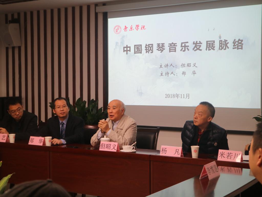 講座中,但昭義教授談到從小深受民族音樂的熏陶,立志用鋼琴演奏帶動民族音樂的發展。他從100年前趙元任先生創作的鍵盤音樂作品《花八板與湘江浪》講起,講述了中國早期、新中國成立之后、”文化大革命“時期、70年代后期和80年代中國鋼琴曲創作歷程和意義。他提到藝術教育具有啟迪思維的作用,音樂則是最貼近人心的藝術。他主張把民族音樂融入到基礎教育中去,同時擯棄以前老舊的套路,用新的音樂理念研究基礎概念,從而有效促進鋼琴教育和鋼琴演奏的發展。
