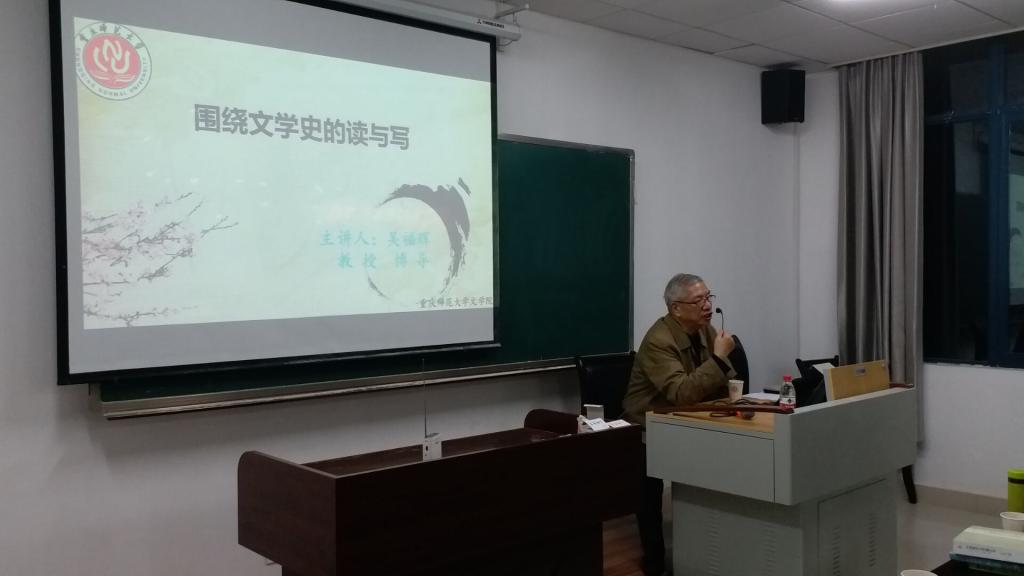10月22日晚,中國現代文學館原副館長、博士生導師吳福輝教授應邀到我校文學院,作了一場題為“圍繞文學史的讀與寫”的學術講座。此次講座在學院樓205教室展開,由文學院教授楊華麗主持,中國現當代文學、文藝學、古代文學等專業碩士研究生及部分本科生近100人聆聽到此次講座。