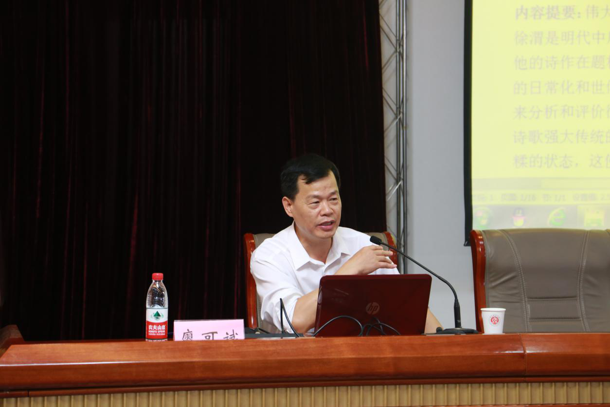 9月29日下午,北京大學教授、博士生導師廖可斌應邀為我校文學院師生做了題為《徐渭詩歌的非古典特征》的講座,講座由文學院教授王于飛主持。