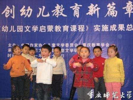 2011年1月15日上午,“幼兒園文學啟蒙教育課程實施成果總結會”在沙坪壩岷山飯店會議室隆重舉行。會議由中國作家協會兒童文學委員會、重慶市教育學會主辦,重慶師范大學西部兒童文學研究所承辦。
