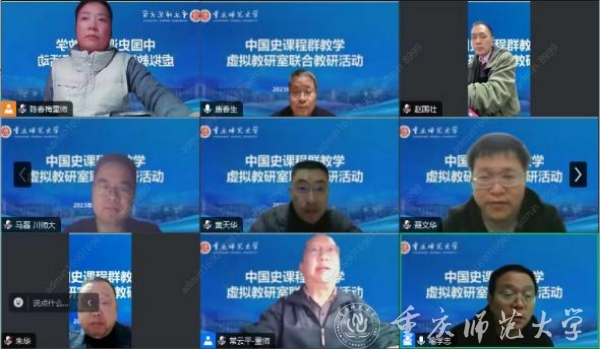 為了提高本科生教育教學(xué)質(zhì)量,加強(qiáng)教師間的溝通交流,推動知識經(jīng)驗(yàn)的共享傳遞,并構(gòu)建起系統(tǒng)的教學(xué)體系,重慶師范大學(xué)中國史課程群虛擬教研室于11月14日晚舉行了線上聯(lián)合教研活動。