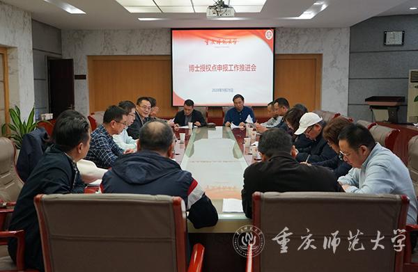 首先,董景榮副校長講話,他鼓勵各學院和學科要鼓足干勁、積極開展博士點申報,學校將全力支持符合條件的學科參與重慶市和國家層面的競爭。同時要求各申博學院的院長、書記和學科帶頭人要高度負責、親自把關,加強申報材料的填報與打磨,確保申報質量。