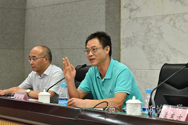 接下來,董景榮副校長圍繞我校學科建設總體工作發言。他強調,學校黨政高度重視學科建設工作,第三次黨代會也為學科建設明確了新的目標任務,孟校長多次組織召開學科建設工作會議、親力親為全面開展學科調研、協調相關部門推進學科聯動發展。同時,學校始終堅持分層建設的思路,在國家“雙一流”建設的大背景下,從“一流學科”建設、市級重點學科建設、特色學科群建設三個層面著力,圍繞博士點申報、學科評估等重點工作,全面推進學科建設的快速發展。因此,希望各學院黨政領導要高度重視學科建設工作,認真學習領會上級部門和學校的相關文件精神,真抓落實,高質量完成學科建設各項目標任務。