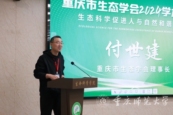 重慶市生態(tài)學會理事長、我校生命科學學院付世建教授在致辭中回顧了重慶市生態(tài)學會近年來的主要成果,并對學會在推動生態(tài)科學研究、服務地方生態(tài)建設方面所作出的努力給予了充分肯定。他表示,希望本次會議成為專家學者分享成果、交流經驗的平臺,進一步促進生態(tài)學科的發(fā)展和生態(tài)文明建設的實踐。