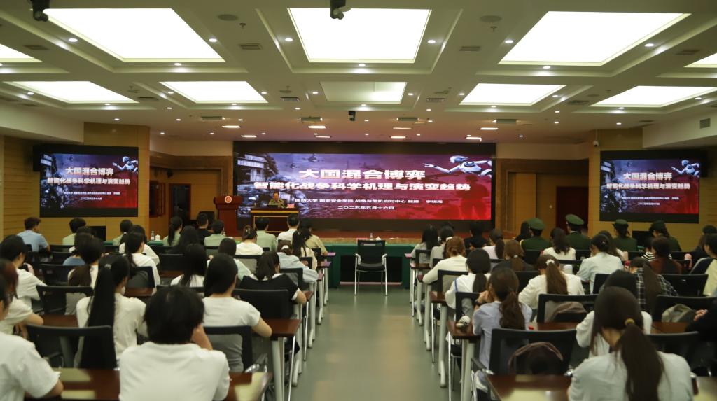 李明海教授圍繞“智能化戰爭產生的歷史必然性”“智能化戰爭的基本特征”“智能化戰爭的制勝機理”“智能化戰爭的發展趨勢”“應對智能化戰爭的戰略思考”五個方面,針對如何認識智能化戰爭、如何打贏智能化戰爭等重大問題做了全方位的闡釋,深入淺出對智能化戰爭理論與實踐進行了系統的研究和分析,讓在場聽眾對智能化戰爭有了更加深入的理解,對筑牢堅不可摧的國安之盾有了更加堅定的信心和底氣。