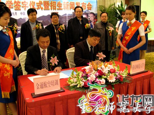 在今日下午召開的新聞發布會上,重慶師范大學與“金通航空培訓”簽訂了合作協議,將針對符合條件的應往屆高中畢業生進行招生。據介紹,雙方合作開辦的重慶師范大學藝術教育專業(空乘與禮儀方向)屬全日制本科學歷教育,學制為四年,今年將在川渝地區招收學生160名。重慶師范大學主要負責大學基礎課教育,而金通航空培訓主要負責專業課教學,擔任專業課教學的教師全部是民航業專家和獲得國際航空運輸協會乘務教員資格證的教師。