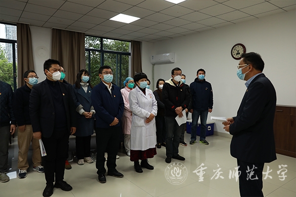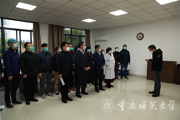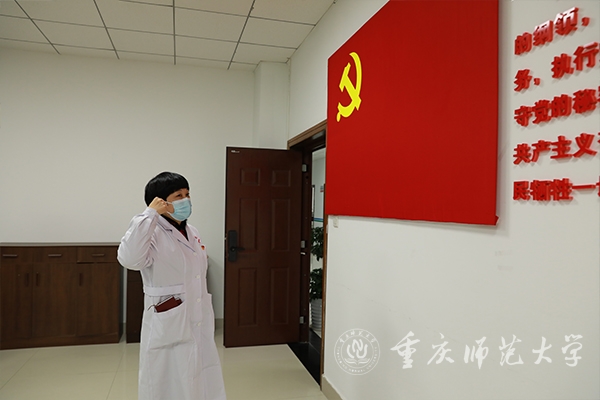 最后,校黨委副書記陳志軍作了講話。他表示,尹偉欣同志工作積極主動(dòng),思想政治素質(zhì)好,能夠全心全意為廣大師生服務(wù)。特別是學(xué)校發(fā)生新冠肺炎疫情以來,以實(shí)際行動(dòng)證明了向黨組織靠攏的決心,勇于擔(dān)當(dāng)、無私奉獻(xiàn),不怕犧牲、沖鋒在前,不分白天黑夜,一心撲在工作崗位上,帶領(lǐng)全院醫(yī)護(hù)人員,為保障全校師生的生命安全和學(xué)校抗疫工作的順利開展作出了突出貢獻(xiàn),全體師生黨員要向她學(xué)習(xí)。他希望,尹偉欣同志牢記錚錚誓言,繼續(xù)發(fā)揚(yáng)優(yōu)良作風(fēng),向身邊優(yōu)秀黨員看齊,以更加嚴(yán)格的標(biāo)準(zhǔn)要求自己,堅(jiān)持用習(xí)近平新時(shí)代中國特色社會(huì)主義思想武裝頭腦、指導(dǎo)實(shí)踐、推動(dòng)工作,在今后的工作生活中更加充分發(fā)揮黨員先鋒模范作用,用行動(dòng)為黨徽“增色”、為黨旗“添彩”。他指出,學(xué)校疫情發(fā)生以來,機(jī)關(guān)黨委后勤與資產(chǎn)管理處黨支部第一時(shí)間響應(yīng)學(xué)校黨委號(hào)召,堅(jiān)決落實(shí)學(xué)校疫情防控各項(xiàng)部署,充分發(fā)揮黨支部的戰(zhàn)斗堡壘作用,為打贏學(xué)校疫情防控殲滅戰(zhàn)提供了有力后勤保障。接下來,黨支部要加強(qiáng)對尹偉欣同志的教育和考察,持續(xù)凝聚黨員力量,再接再厲,再立新功。他強(qiáng)調(diào),當(dāng)前,面臨嚴(yán)峻復(fù)雜的疫情防控形勢,學(xué)校領(lǐng)導(dǎo)高度重視,深入一線,靠前指揮,全面準(zhǔn)確貫徹落實(shí)上級(jí)決策部署,堅(jiān)持“外防輸入、內(nèi)防反彈”總策略和“動(dòng)態(tài)清零”總方針不動(dòng)搖,切實(shí)保障好廣大師生的生命健康安全,凝心聚力共同筑牢疫情防控網(wǎng)。校內(nèi) 300余人黨員干部和教職員工組成抗疫志愿隊(duì),時(shí)刻堅(jiān)守在校園疫情防控一線;校外360余名黨員教職工屬地下沉,奮戰(zhàn)在社區(qū)防控一線,積極作出重師貢獻(xiàn)。我們堅(jiān)信,在上級(jí)和學(xué)校黨委的堅(jiān)強(qiáng)領(lǐng)導(dǎo)下,黨員干部關(guān)鍵時(shí)刻“站得出”,師生員工危難關(guān)頭“豁得出”,就一定能打贏這場疫情殲滅戰(zhàn),讓我們的校園早日恢復(fù)往常的煙火氣、恢復(fù)往常的讀書聲、恢復(fù)往常的勃勃生機(jī)!