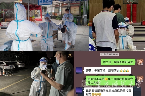 擔當作為,展青春使命。計算機與信息科學學院黨員王藝潔同學,自制抗疫短視頻(已獲得7.1w播放量)鼓舞考研同學;主動擔任園區疫情管理網格員,每天核查同學核酸檢測情況,保證核酸檢測不漏一人。地理與旅游學院黨員梅香雪同學每天駐守在學生心理健康教育與咨詢中心,接聽處理熱線電話200余人次,為同學們的心理健康成長保駕護航。計算機與信息科學學院退伍大學生黨員田鎮齊,每天騎著電動車載著大音響,帶著大包小包班牌,往返于核酸檢測集合場和出口處,組織學院同學們有序排隊核酸,有序離場簽到。大事小事,事無巨細,份內份外,盡心盡力,他既當組織者又當志愿者,只要疫情需要,他總是第一時間沖在前面,領取物資、運送盒飯、引導核酸檢測...,他用實際行動踐行“召之即來,來之能戰,戰之必勝!”的優良傳統。