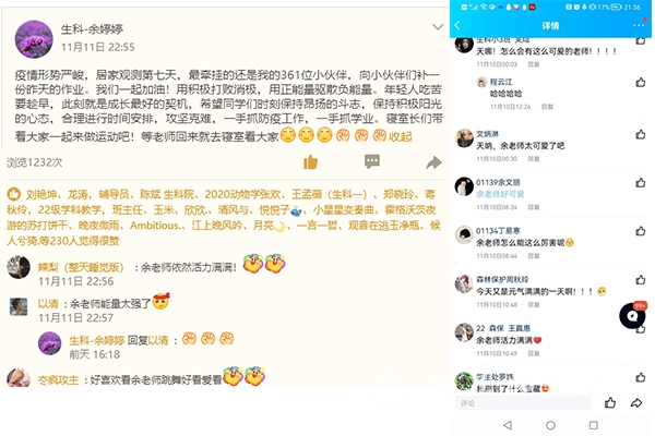 “疫情形勢嚴峻,居家健康監測第五天,最牽掛的還是我的361位小伙伴們。每天的網格化報寢、排查、填表、統計、零報告,特殊時期,你的一句‘正常’能讓我安心,我的一句‘全年級正常’能讓學院安心,學院的一句‘全院正常’能讓學校放心……無數個‘正常’才能把大家的生活拉回正軌。”這是生命科學學院2022級輔導員余婷婷老師,在自己的QQ空間中寫的一段話。