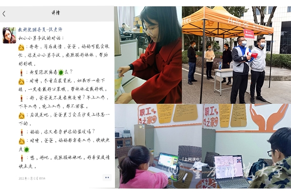 夯基壘臺、積厚成勢。在嚴峻的校園疫情防控形勢下,我校二級黨組織當即把做好疫情防控工作作為重中之重,召開會議研究部署相關工作,號召全體黨員行動起來。教育科學學院、文學院、經濟與管理學院和計算機與信息科學學院黨委充分發揮黨組織的戰斗堡壘作用,組織全院師生全面投入疫情防控殲滅戰。從學院防疫工作總體安排、深入寢室看望慰問學生、組織師生線上教學,到為全體工作人員備齊生活物資、給輔導員加油打氣,再到向每位抗疫人員家屬發去慰問信…學院黨委真正起到了領導、組織作用,起到了暖心服務保障作用,解除了大家的后顧之憂。