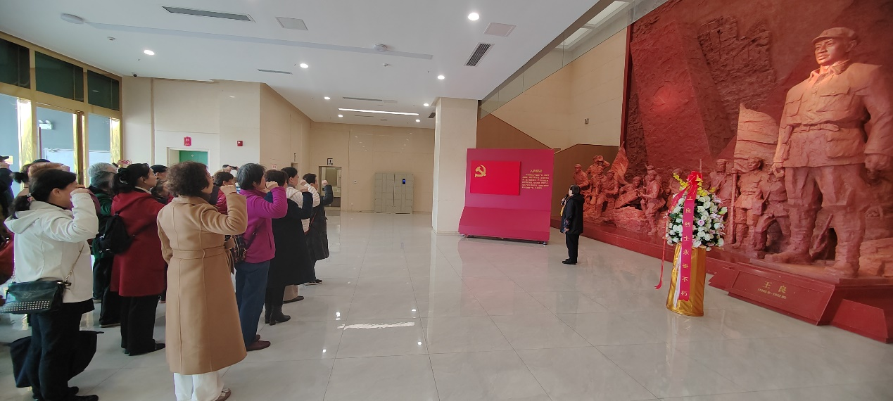 在紀念館的王良同志雕塑前,全體黨員整齊列隊,離退休黨委書記劉艷同志帶領大家向王良將軍塑像敬獻花籃,深切緬懷這位紅軍將領。老黨員吳永恒同志帶領大家重溫入黨誓詞,全體黨員高舉右手莊嚴宣誓,表達了為黨的事業奮斗終身的堅定理想信念。