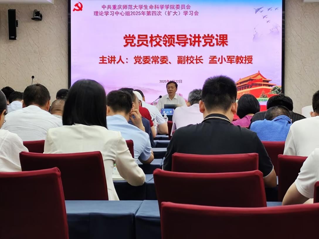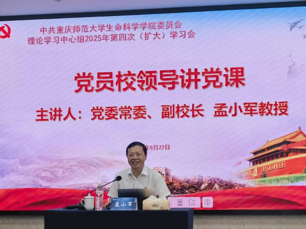 5月22日下午,生命科學學院黨委在逸夫樓409會議室召開理論學習中心組2025年第四次(擴大)學習會,會上,校黨委常委、副校長孟小軍教授為生命科學學院全體教職工黨員講授作風建設專題黨課。本次黨課聚焦中央八項規定及其實施細則精神,深入剖析黨的作風建設歷史脈絡,并對學院黨政班子和教職工黨員提出明確要求,進一步強化了學院全體黨員的紀律意識和責任擔當,為學院事業發展提供堅強保障。會議由生命科學學院黨委書記付長波主持。