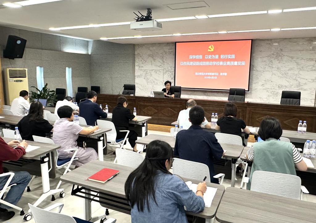 為進一步強化作風建設,推動學習教育落地見效。6月3日下午,學校黨委副書記周學馨為分管部門和聯(lián)系學院的黨員、干部講授關于深入貫徹中央八項規(guī)定精神學習教育專題黨課。黨委組織部、黨委宣傳部、黨委統(tǒng)戰(zhàn)部、校工會全體黨員和歷史與社會學院黨委委員在綜合辦公樓226會議室參加黨課學習。
