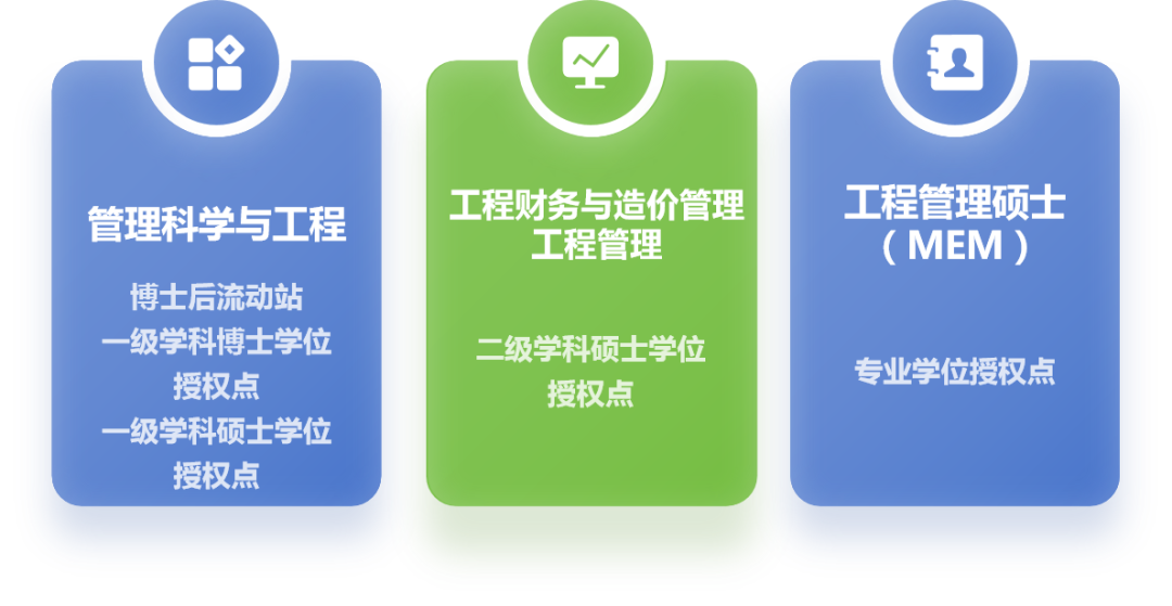 學(xué)院擁有管理科學(xué)與工程一級(jí)學(xué)科博士學(xué)位授權(quán)點(diǎn),管理科學(xué)與工程博士后流動(dòng)站;設(shè)置管理科學(xué)與工程一級(jí)學(xué)科碩士學(xué)位授權(quán)點(diǎn)以及工程財(cái)務(wù)與造價(jià)管理、工程管理二級(jí)學(xué)科碩士學(xué)位授權(quán)點(diǎn)、工程管理碩士(MEM)專(zhuān)業(yè)學(xué)位授權(quán)點(diǎn)。