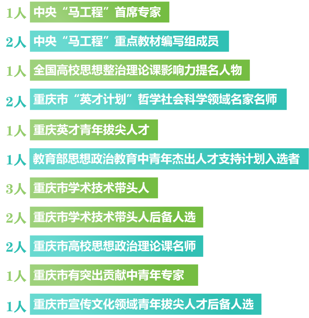學(xué)院堅(jiān)持教學(xué)與科研互促互進(jìn)。近五年來(lái),在教學(xué)上,學(xué)院教師獲得了重慶市“一流本科課程”、重慶市思政課教師教學(xué)大賽“特等獎(jiǎng)”等20余項(xiàng)榮譽(yù)。在科研上,學(xué)院教師獲批項(xiàng)目共計(jì)100余項(xiàng),其中國(guó)家級(jí)項(xiàng)目10項(xiàng)、省部級(jí)項(xiàng)目60余項(xiàng),發(fā)表學(xué)術(shù)論文共計(jì)300余篇,其中,在CSSCI期刊發(fā)表學(xué)術(shù)論文100余篇,在《哲學(xué)研究》《馬克思主義研究》《馬克思主義與現(xiàn)實(shí)》等權(quán)威期刊發(fā)表學(xué)術(shù)論文多篇,出版學(xué)術(shù)專(zhuān)著20余部,獲省部級(jí)獎(jiǎng)勵(lì)10余項(xiàng)。